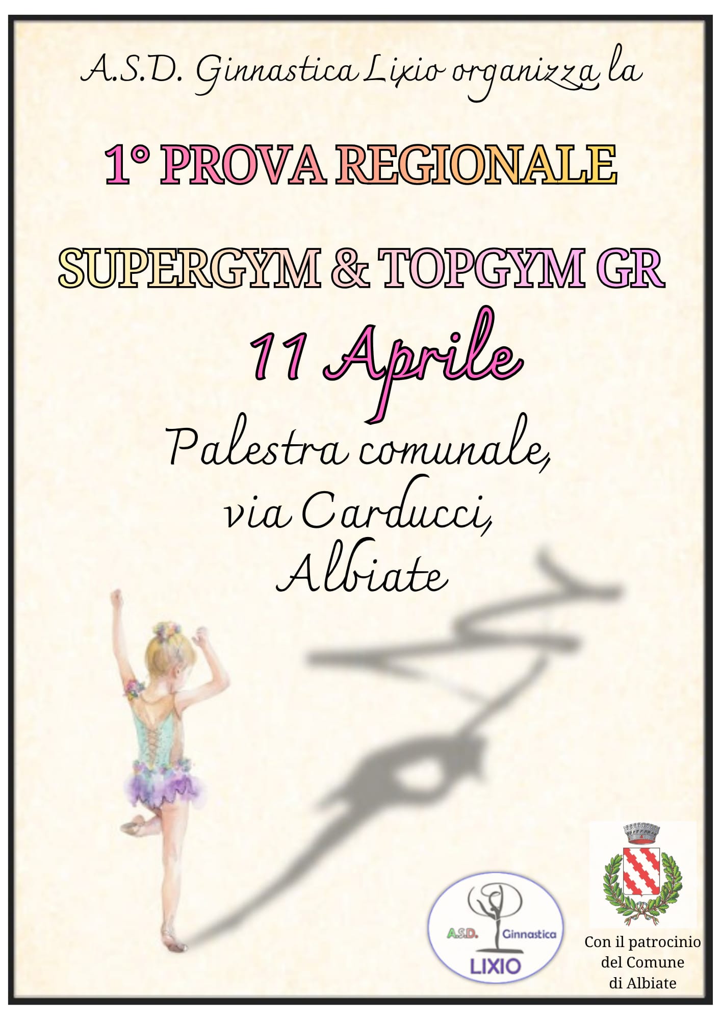 In apertura delle attività di Supergym le società Ginnaste del Lago e Ginnastica Pavese hanno presentato coinvolgenti esercizi collettivi, regalando un momento di spettacolo e intrattenimento dedicato alle giovani ginnaste. Un inizio carico di entusiasmo ed energia.